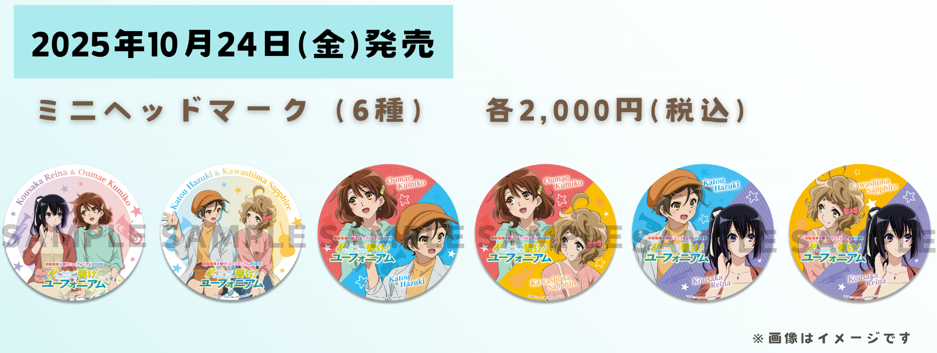 - 2025年10月1日から京阪電車で運行する「京阪電車×響け!ユーフォニアム2025」のラッピング電車に掲出されるヘッドマークと同じデザインのミニヘッドマーク(直径78mm)を販売します。